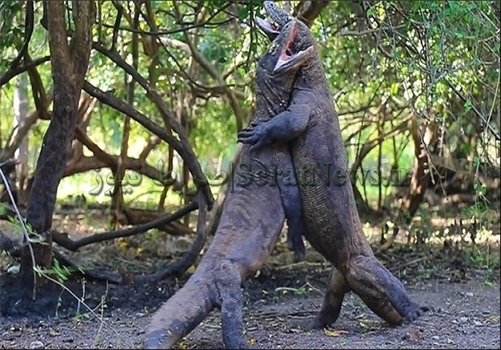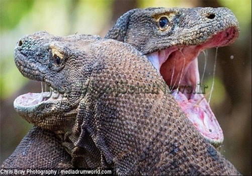 دو مارمولک عظیم الجثه که وزنی حدود 200 پوند داشتند در باغ وحش اندونزی کشتی گرفتند. شاهدان مسابقه این دو مارمولک میگویند: کشتی این دو حیوان نزدیک به 30 دقیقه طول کشید. تصاویر زیر توسط عکاس استرالیایی تهیه شده است.