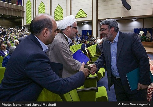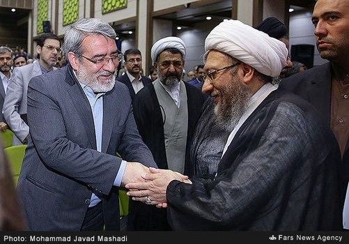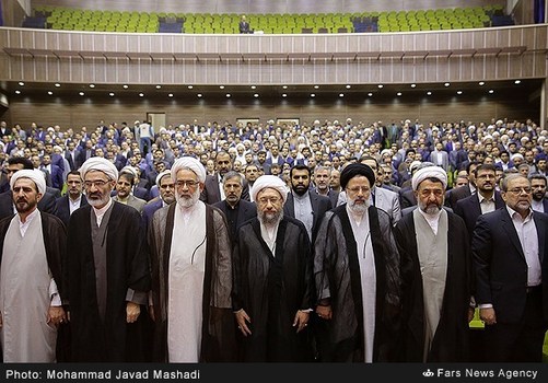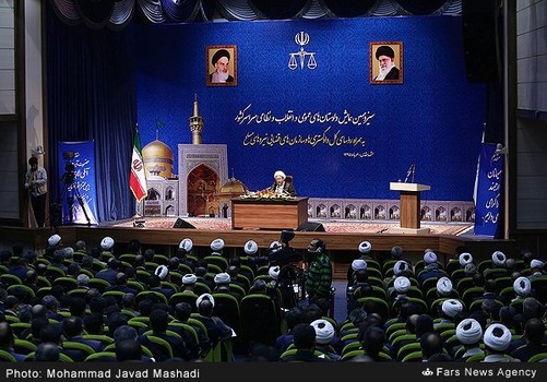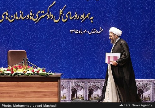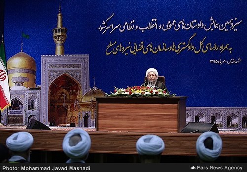 سیزدهمین همایش دادستانهای عمومی و انقلاب و نظامی سراسر کشور صبح پنج شنبه هشتم مهر با حضور ایت الله آملی لاریجانی رئیس قوه قضائیه در سالن ولیعصر دادگستری مشهد برگزار شد.