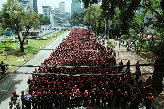 تصاویر/ تظاهرات منظم کارگران اندونزیایی