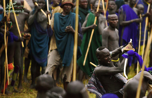 مردان قبیلهای به نام "سوری" در اتیوپی مراسمی سنتی و در عین حال خونین برای تحت تاثیر قرار دادن زنان و پیدا کردن همسر برگزار میکنند. در این رویداد مردان با به دست گرفتن چوب های بزرگ به جان هم می افتند و مبارزه میکنند. برهنه بودن بدن مبارزان منجر به وارد آمدن آسیب های جدی و گاهی مرگ آنان میشود.