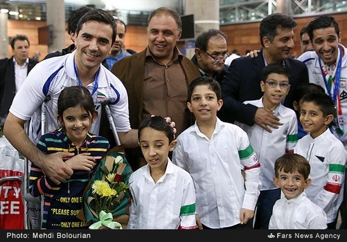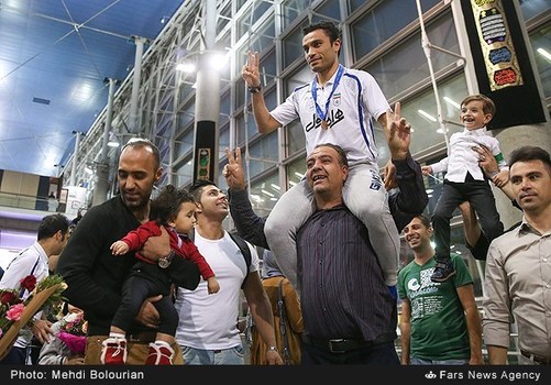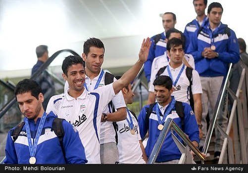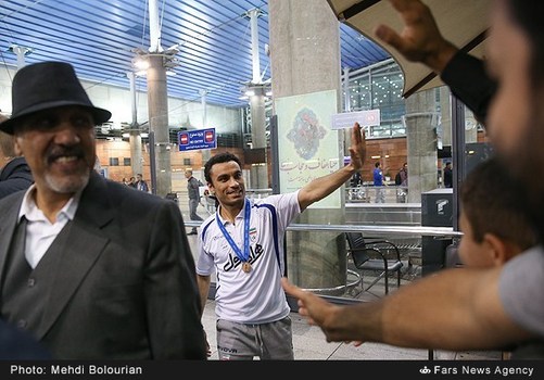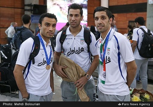 بازیکنان و کادر فنی تیم ملی فوتسال ایران که در هشتمین دوره رقابتهای جام جهانی فوتسال توانستند عنوان سومی را از آن خود کنند بامداد سه شنبه سیزدهم مهر از طریق فرودگاه امام خمینی (ره) به کشور بازگشت. نصرالله سجادی معاون وزارت ورزش، مهدی تاج رئیس فدراسیون فوتبال، علی کفاشیان نایب رئیس و محمدرضا ساکت مدیر تیمهای ملی برای استقبال از تیم ملی فوتسال در فرودگاه حضور پیدا کردند.