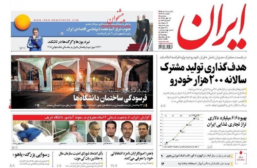 صفحه اول روزنامه های پنجشنبه ۱۵ مهر ۱۳۹۵