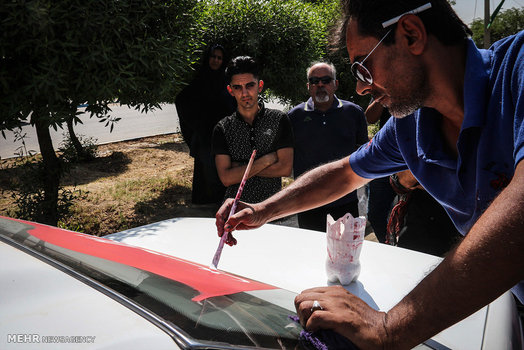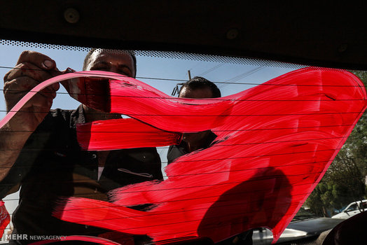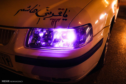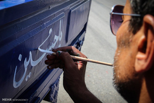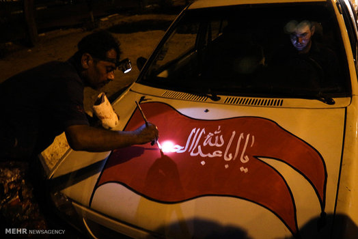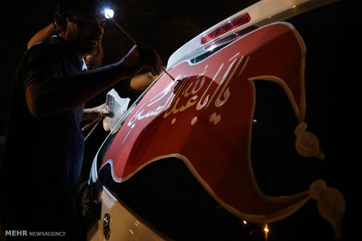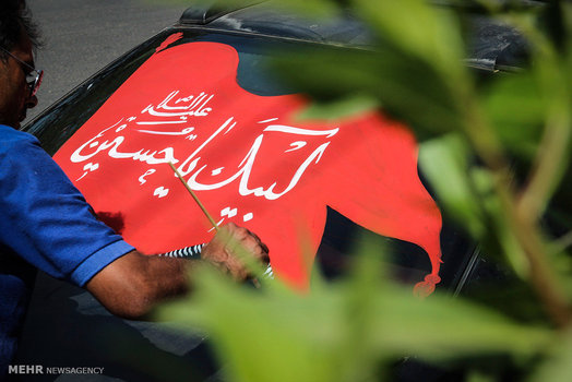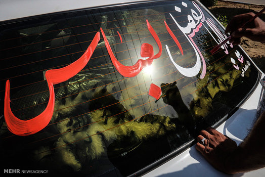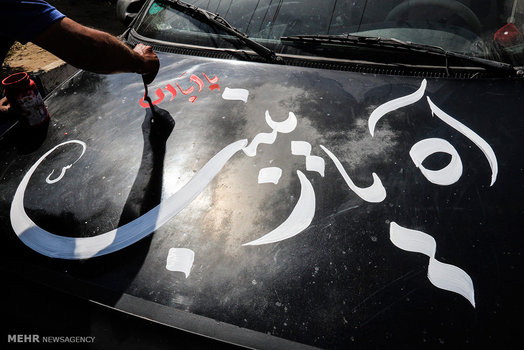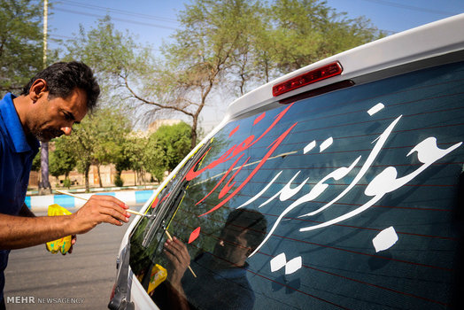 با فرارسیدن ایام محرم رانندگان ، ماشین های خود را به نام مبارک اباعبدالله الحسین(ع) مزین می کنند.