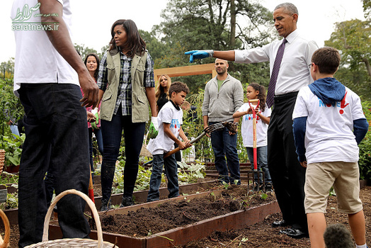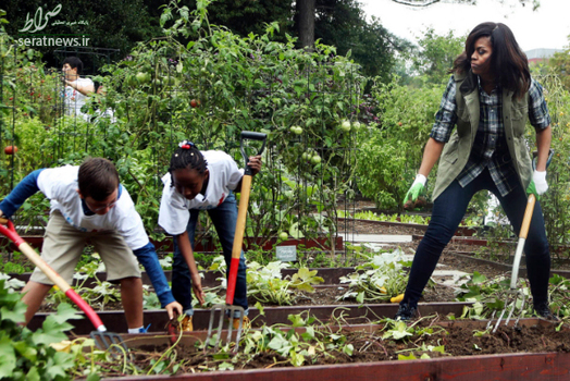 میشل اوباما همسر رئیس جمهور آمریکا که بخشی از کاخ سفید را به کار کشاورزی اختصاص داده روز گذشته به همراه گروه از دانش آموزان محصولات کشاورزی را از آن برداشت کرد. این باغچه سال 2009 ساخته شده است. همسر اوباما در این باغ بادمجان، بامیه، سیب زمینی، گوجه فرنگی پرورش می‌دهد.