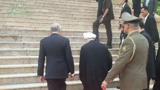 رئیس جمهوری اسلامی ایران عصر جمعه به وقت محلی در کاخ نخست وزیری مالزی در شهر 'پوتراجایا' از سوی 'نجیب تون رزاق' نخست وزیر این کشور جنوب شرق آسیا مورد استقبال رسمی قرار گرفت.روحانی و نجیب تون رزاق پس از پایان مراسم استقبال رسمی وارد محل مذاکرات دو جانبه شدند.