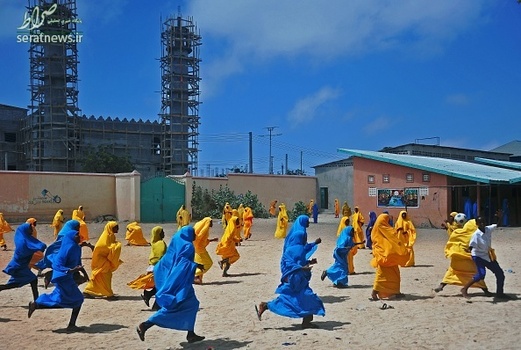فوتبال بازی کردن دختران دانش آموز در مدرسه ای ابتدایی در جنوب سومالی مورد توجه بسیاری از رسانه های جهان قرار گرفته است. در تصاویر منتشر شده این دختران با پوشش خاص خود که آبی و زرد رنگ است و با دمپایی فوتبال بازی میکنند.