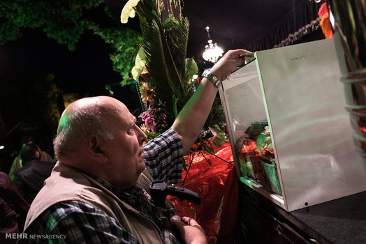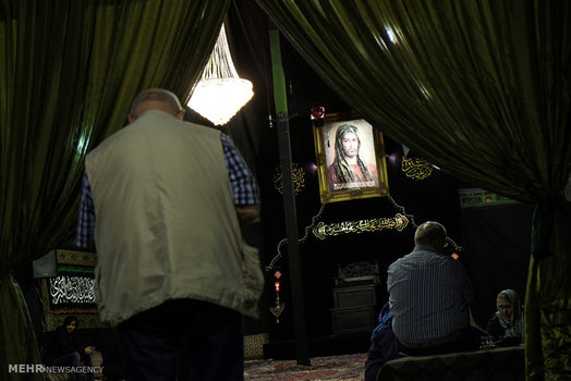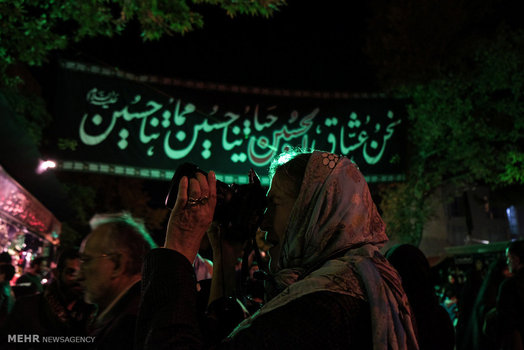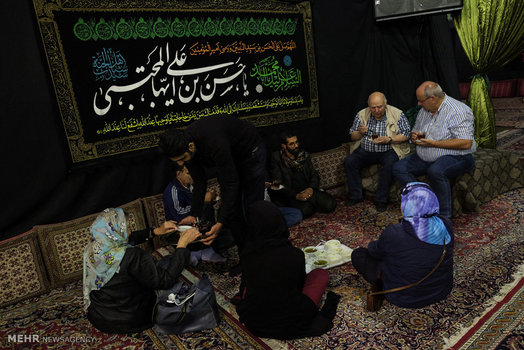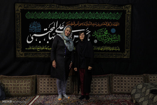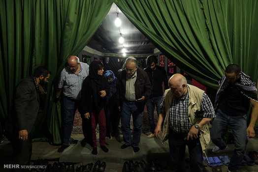 چند توریست آلمانی در یکی از خیمه های عزاداری در شب پنجم محرم میهمان هیئت جنت الحسین مشهد بودند.