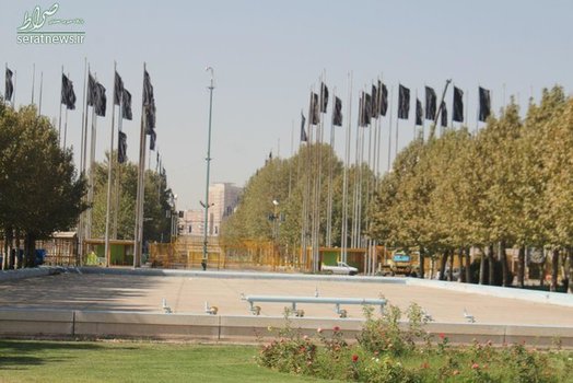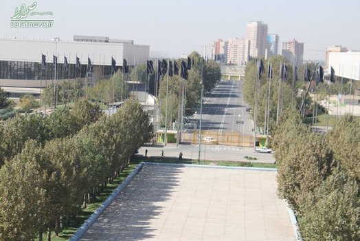 علاوه بر ورزشگاه، در مسیرهای منتهی به ورزشگاه آزادی و سردر این ورزشگاه نیز، پرچمهای منقش به نام امام حسین (ع) نصب و برافراشته شده است.
