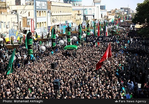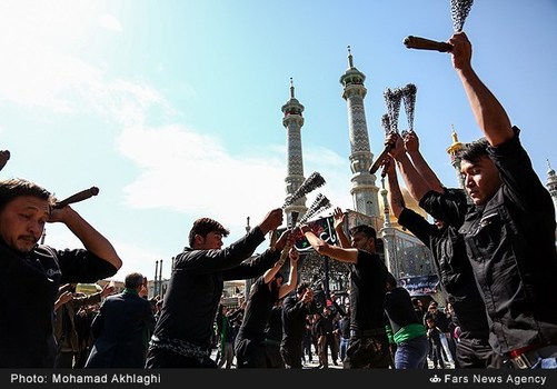 مراسم عزاداری روز عاشورا صبح چهارشنبه بیست و یکم مهر با حضور گسترده عاشقان امام حسین (ع) در قم برگزار شد.
