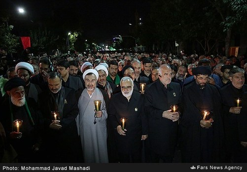 همزمان با شب شهادت حضرت سید الشهداء(علیهالسلام)، آئین سنتی شام غریبان با حضور خدامین بارگاه منور رضوی درمسیر چهارراه شهدا تا حرم مطهر رضوی و سپس در صحن انقلاب اسلامی برگزار شد.در این مراسم، خادمان، کفشداران، دربانان، حفاظ و فراشان حرم مطهر رضوی در میان حلقه حزن و اندوه عزاداران حسینی در حالی که لاله شمعهای فروزان در دست داشتند، مسیر چهارراه شهدا تا حرم مطهر را طی کردند و برای عرض تسلیت به ساحت مقدس آن امام همام در صحن انقلاب اسلامی که به پرچم سرخ گنبد سید الشهدا(علیهالسلام) مزین شده بود، گردهم آمدند.