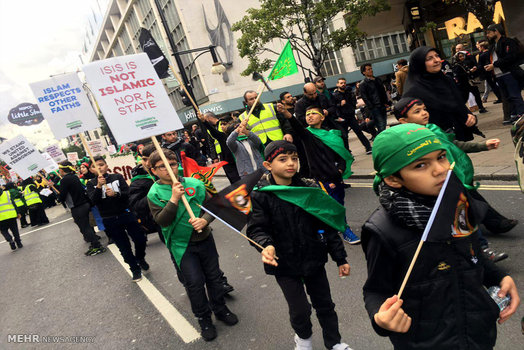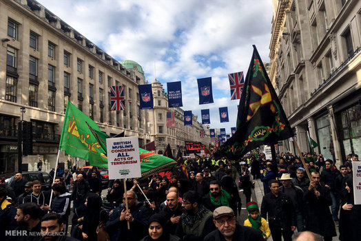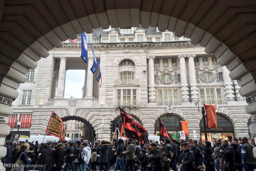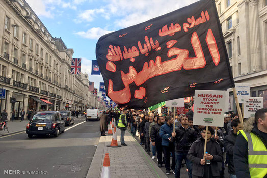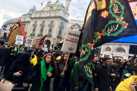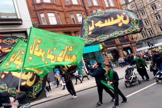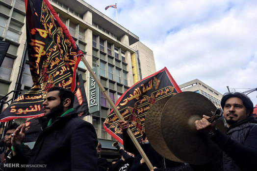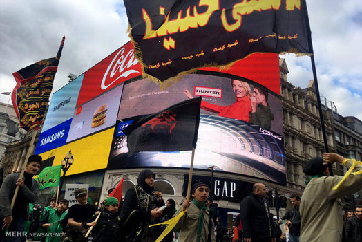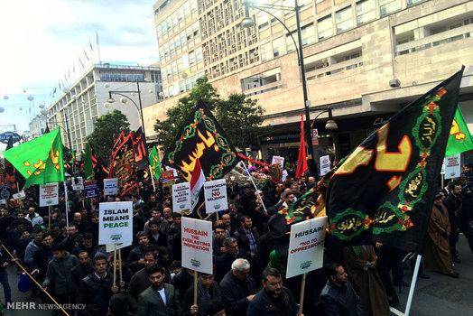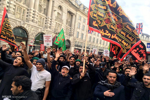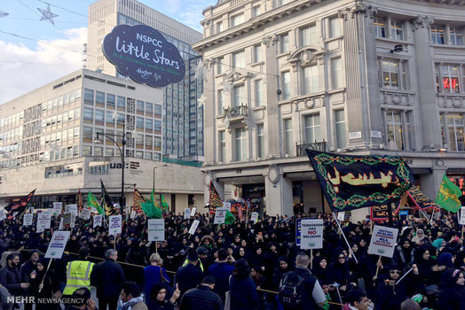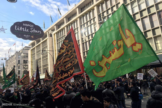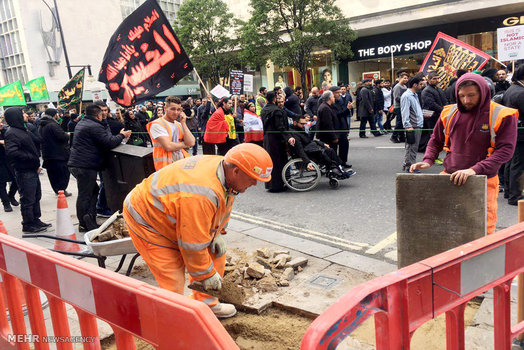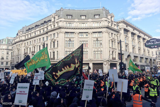 مراسم عزاداری روز عاشورای حسین از ساعت ساعت ١٣ روز چهارشنبه ١٢ اکتبر از خیابان آکسفورد لندن شروع شد و عزاداران پس از عبور از خیابان اصلی لندن خود را به داونینگ استریت (دفتر نخست وزیر) رساندند. از نکات جالب توجه میتوان به حضور هزاران نفر از مسلمانان کشورهای مختلف جهان در مراسم امروز اشاره کرد. حضور انبوه عزادارن موجب بسته شدن تمامی خیابان های منتهی به مرکز شهر شده بود. این موضوع باعث ایجاد ترافیک چند ساعته در خیابان های مرکز شهر لندن شد. از نکات جالب توجه توضیع شیرینی و نذری و بین رهگذران بود تا به نوعی بابت ایجاد ترافیک از آنها عذرخواهی شود. هنچنین حضور کودکان و نوجوانان در این مراسم چمشگیر بود.