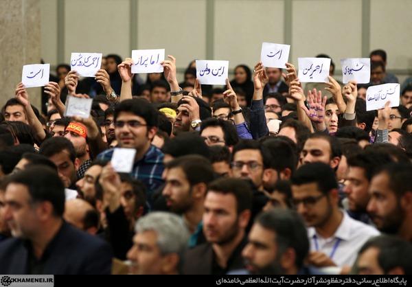 عکس/ شعار دانشجویان در دیدار با رهبری