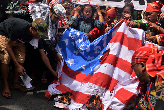 بیش از هزار نفر از مردم فیلیپین در ادامه اعتراضات ضد آمریکایی خود، پرچم آمریکا را در شهر مانیل، پایتخت فیلیپین به آتش کشیدند. تظاهرکنندگان با حمایت از اقدام رودریگو دوترته، رئیس جمهور کشورشان برای اعلام پایان دادن به قطع رابطه با آمریکا و نزدیکی به چین خواهان استقلال فیلیپین در عرصه سیاست خارجی شدند.