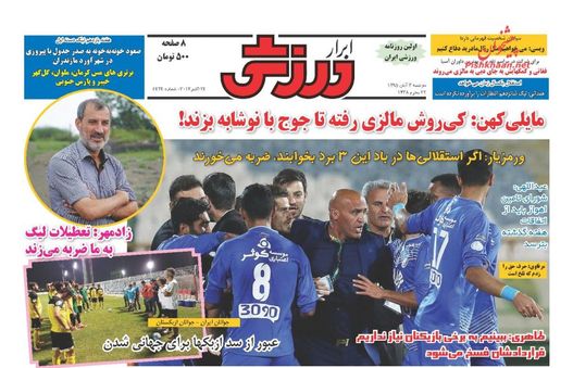 صفحه اول روزنامه های ورزشی دوشنبه ۳ آبان