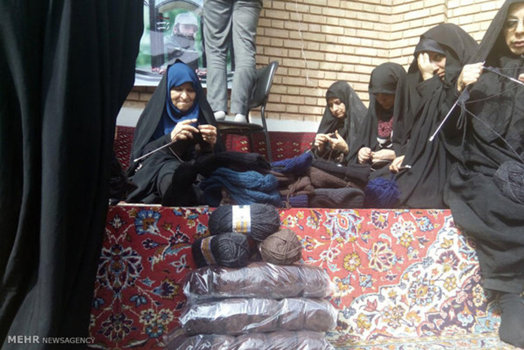روی تریبون سالن مسجد ولیعصر (عج) چند ردیف کلاه بافتنی چیدهاند. مراسم از ساعت ۹ صبح شروعشده و تا ساعت ۱۲ و برگزاری نماز جماعت ظهر ادامه دارد. چند خانم پا به سن گذاشته در ردیفهای اول مشغول بافتن هستند. همانطور که بامهارت رج به رج کلاه را میبافند و جلو میروند، حواسشان به صندلیهای اطراف هم هست. هر دختر جوانی را که در نزدیکیشان میبینند صدایش میزنند تا روش اصولی بافت کلاه را به او هم یاد بدهند! خانم فرهادی ۶۳ ساله و از اهالی همین محله است: «ببین مادر! من که اصلاً نمیتوانم یکگوشه بشینم! همیشه دوست دارم فعال باشم. زمان جنگ هم توی همین مسجد با خانمها جمع میشدیم و برای جبههها کمک میفرستادیم. مربا درست میکردیم یا لباسهای رزمندهها را رفو میکردیم. آن زمان بچههایم کوچک بودند، ولی هر طوری بود کارهایم را بهموقع انجام میدادم که به مسجد برسم.»