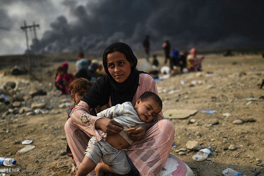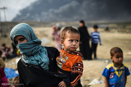 همزمان با نزدیک شدن فصل سرما، زنان و کودکان اهل موصل که محل زندگی شان اکنون به میدان نبرد بین نیروهای عراقی و تروریست های داعش تبدیل شده، در کوه و بیابان سرگردان شده اند.