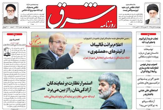 صفحه اول روزنامه های چهارشنبه ۵ آبان