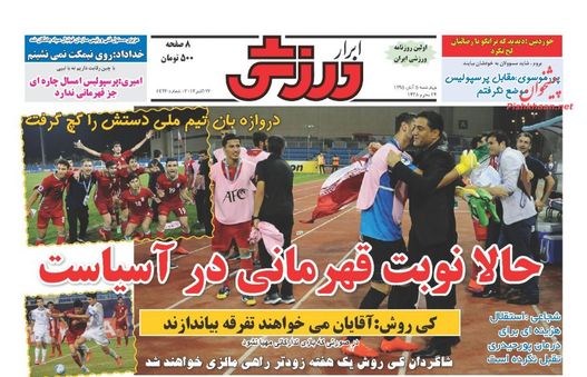 صفحه اول روزنامه های ورزشی چهارشنبه ۵ آبان