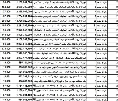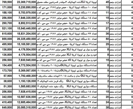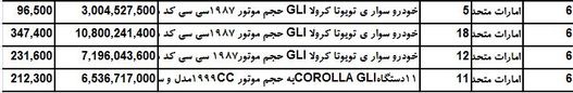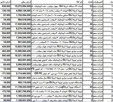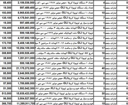 طبق آمار گمرک در شش ماه منتهی به شهریورماه  سال جاری 1564 دستگاه خودرو تویوتا کرو لا به ارزش دلاری 28,958,931