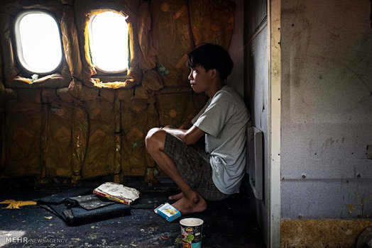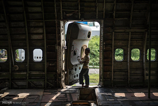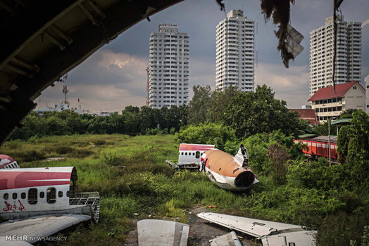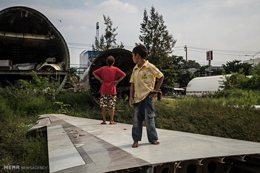 سه خانواده تایلندی در یک گورستان هواپیما در شرق بانکوک در میان لاشه هواپیماهای قدیمی زندگی می کنند