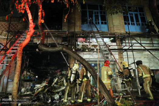 تصاویر/ آتشسوزی گسترده در میدان بهارستان