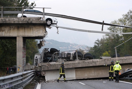 به دنبال ریزش پل در یکی از جادههای پر رفت و آمد در ایتالیا یک نفر کشته و ۵ مجروح شدند.