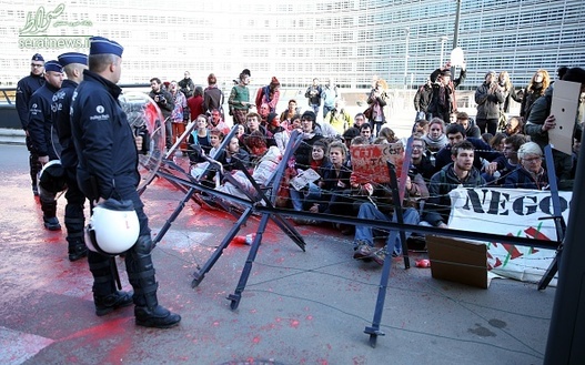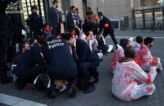 صدها نفر از مردم بلژیک در اعتراض به امضای پیمان تجارت آزاد میان اتحادیه اروپا و کانادا (CETA) مقابل کمیسیون اروپا در بروکسل تجمع کردند. تظاهرات‌کنندگان که لباسهایی به رنگ خون به تن داشتند پارچه نوشته‌هایی در دست داشتند که بر روی آنها عباراتی چون «Game over»، «دموکراسی در حال مرگ» و «هرچه بیشتر اصرار کنید، بیشتر مقاومت می‌کنیم» نوشته شده بود