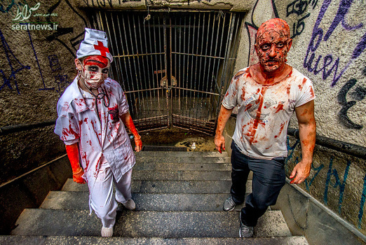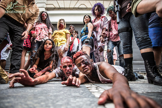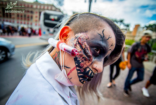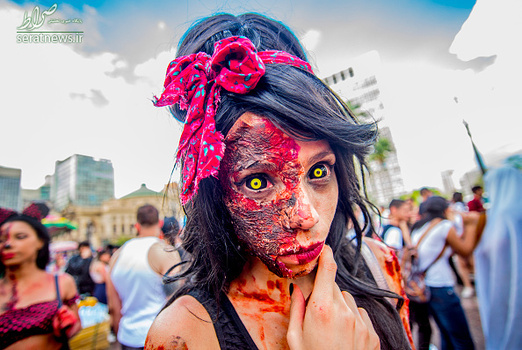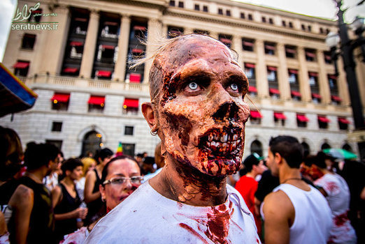 دهها نفر از مردم برزیل در شهر سائوپائولو در مراسم سالانه حرکت زامبیها در خیابان شرکت کردند. در این مراسم شرکت کنندگان چهره خود را به شکل زامبیها و شخصیتهای ترسناک که در فیلمها مشاهده میشود درآورده و در خیابانهای سائوپائولو رژه رفتند.