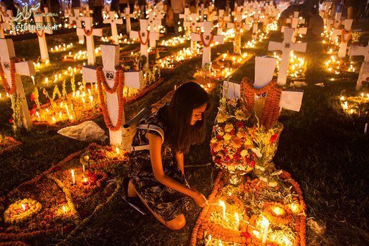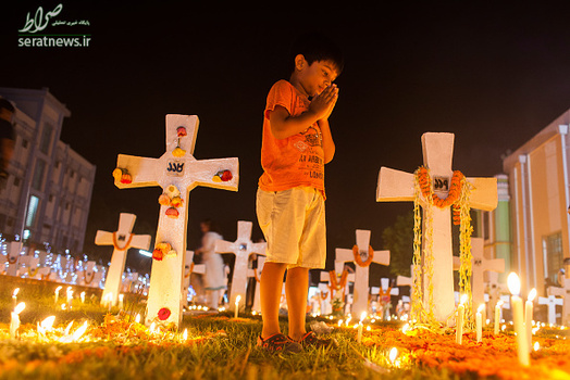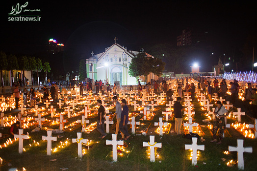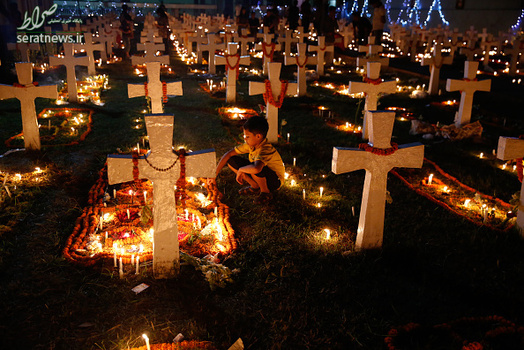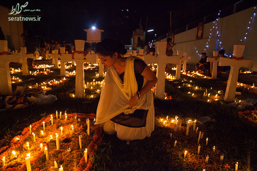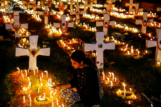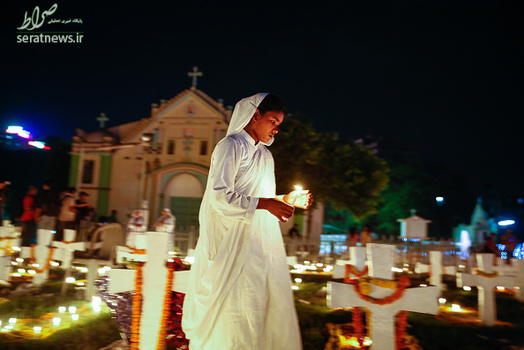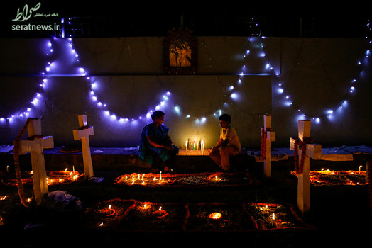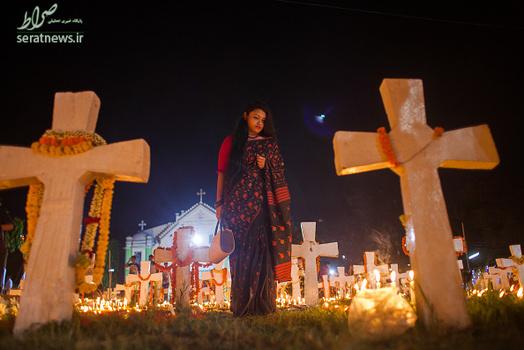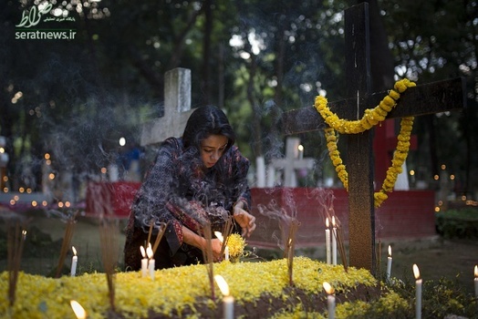 مسیحیان کاتولیک در شهر داکا پایتخت بنگلادش در روزی که به نام روز ارواح نامگذاری شده با حضور در قبرستان مجاور کلیسای مقدس بر روی مزار درگذشتگان خود شمع روشن کرده و دعا میکنند.