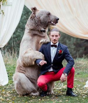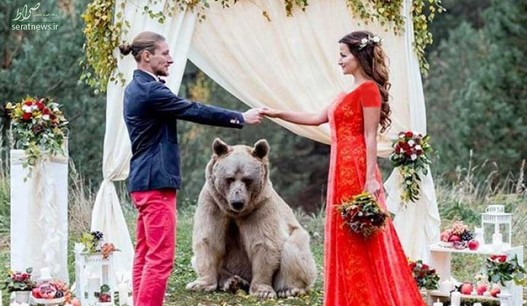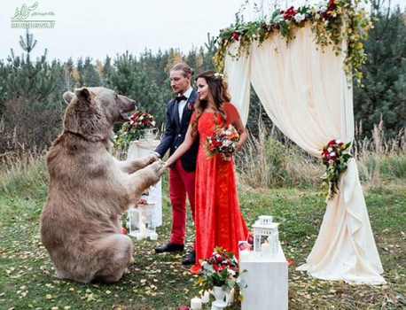 به گزارش العالم، به نقل از پایگاه میرور انگلیس، دنیس" و نلیا، زوج 30 ساله روسی، عروسی خود را با دعوت از یک مهمان ویژه جشن گرفتند. مهمان آنها یک خرس قهوه ای با نام "استفان" بود. در حالی که این زوج، مراسم سوگند و عهد ازدواج را انجام می دادند این خرس نیز به صورت نمادین این پیوند را ثبت کرد.