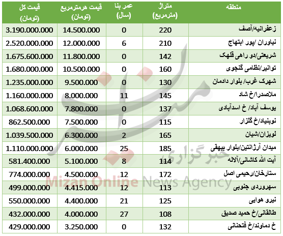 جدول/ نرخ آپارتمانهای سهخوابه در تهران