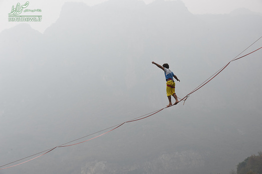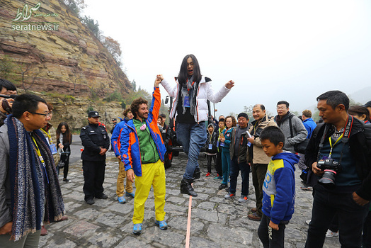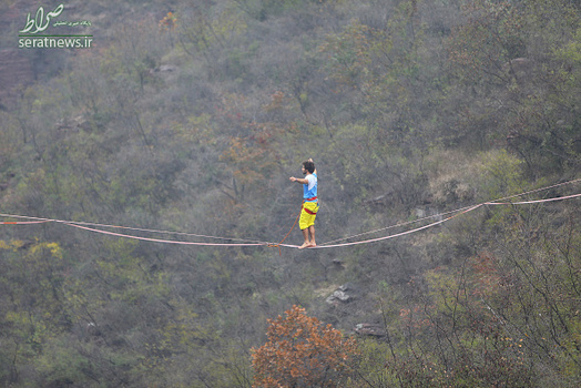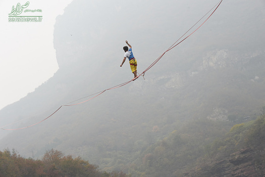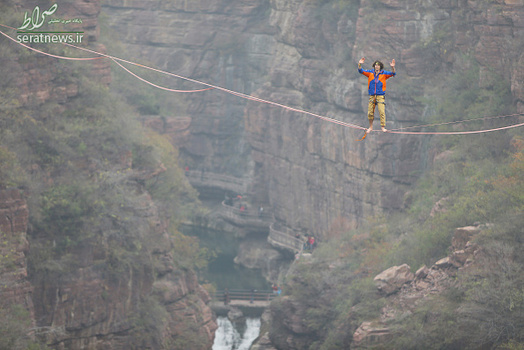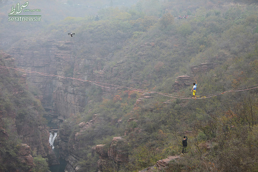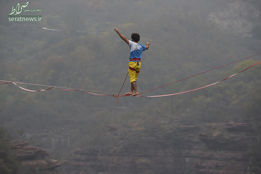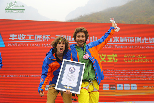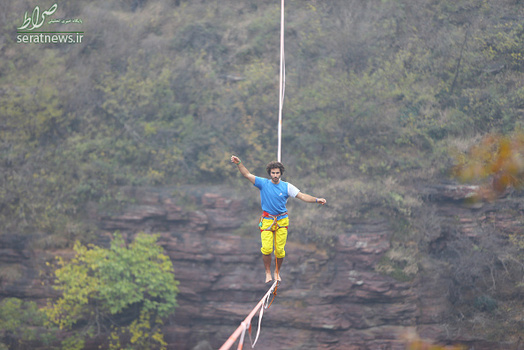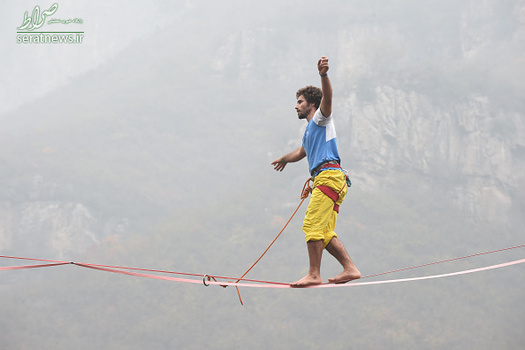 تصاویر/ شکستن رکورد بندبازی رو به عقب