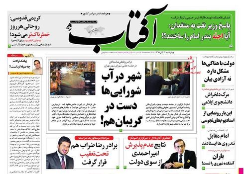 صفحه اول روزنامه های چهارشنبه ۱۹ آبان