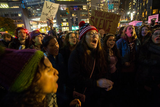 شبکه تلویزیونی سی ان ان گزارش داد تظاهرات گسترده ای در حال حاضر در نیویورک و شیکاگو در حال برگزاری است. تظاهر کنندگان در نیویورک در حال حرکت به سوی برج ترامپ در  منهتن هستند.