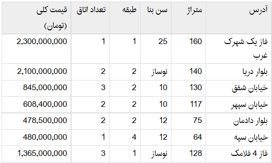 جدول/ قیمت آپارتمان در محدوده شهرک غرب