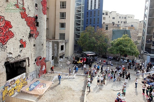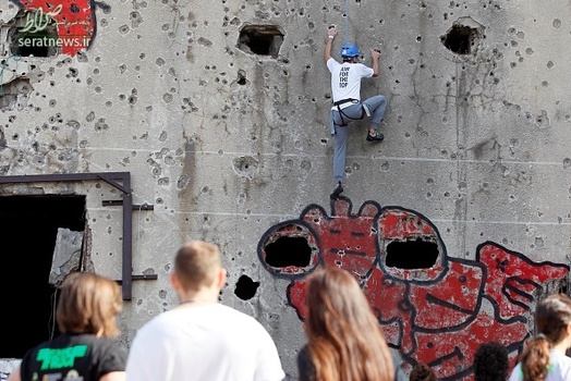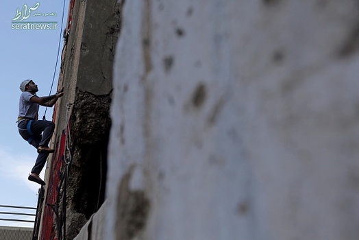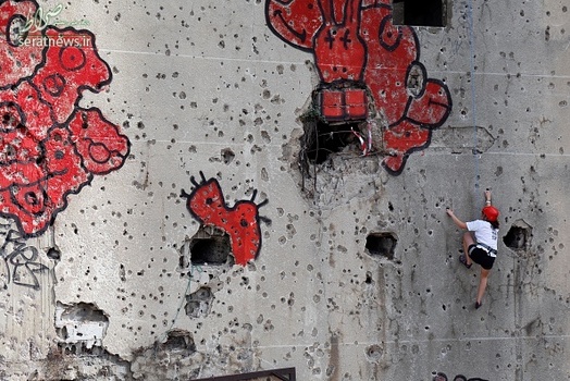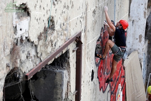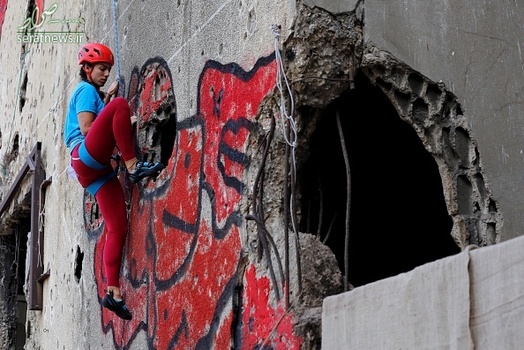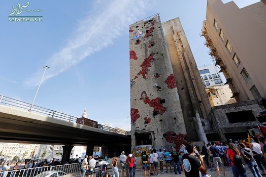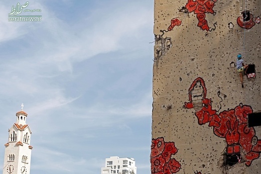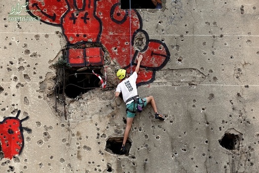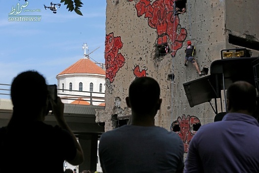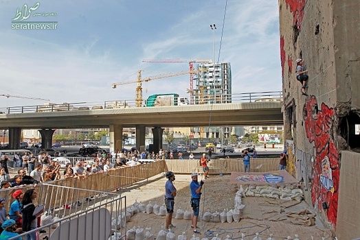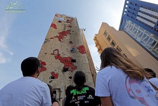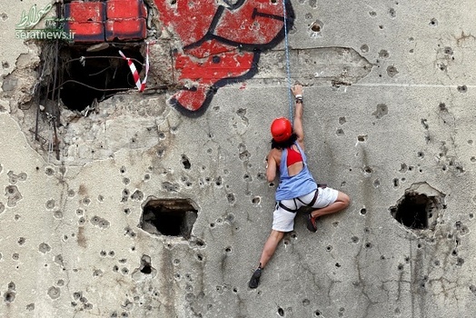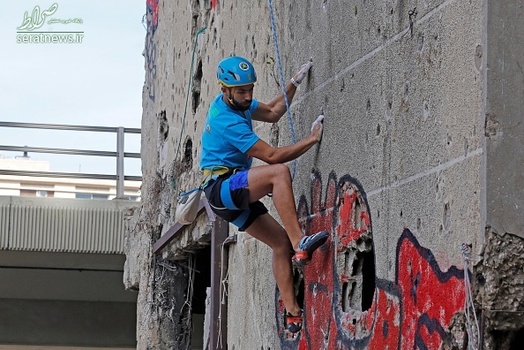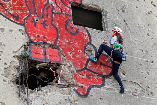 ورزشکاران صخره نورد و دیوارهنوردی لبنانی از یک ساختمان بلند در بیروت که بر اثر جنگ داخلی  لبنان (1975-1998) آسیب دیده استفاده میکنند. اصابت صدها گلوله بر روی این ساختمان سوراخهای زیادی ایجاد کرده است.