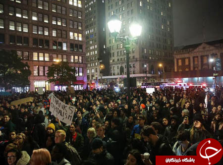 ترامپ تظاهرات کردند و در اوکلند معترضان صفی به طول 5.6 کیلومتر تشکیل