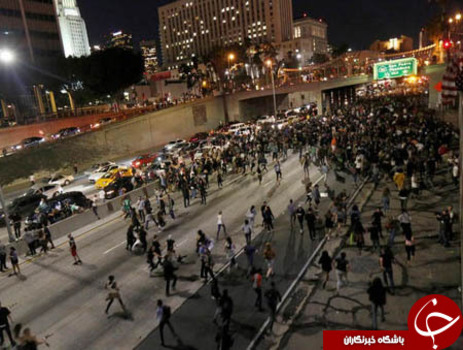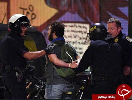 معترضان آمریکایی در اکثر موارد صلحآمیز بود؛ با این حال مردی در شهر