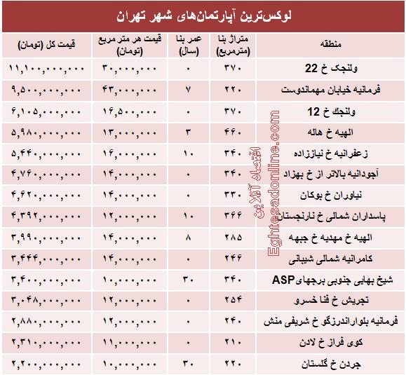 جدول/ نجومی‌ترین مبالغ بازار مسکن تهران