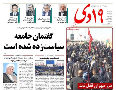 صفحه اول روزنامه های سهشنبه ۲۵ آبان