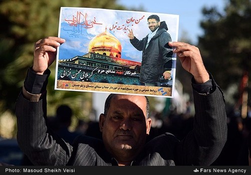 مراسم تشییع پیکر پاک شهید محسن خزایی خبرنگار صدا و سیما در سوریه صبح سه شنبه بیست و پنچم آبان با مردم زاهدان برگزار شد. شهید خزایی شنبه بیست و دوم آبان درحین انجام ماموریت خبری و بر اثر اصابت ترکش ناشی از انفجار خمپاره به ناحیه سر در شهر حلب سوریه به شهادت رسید.