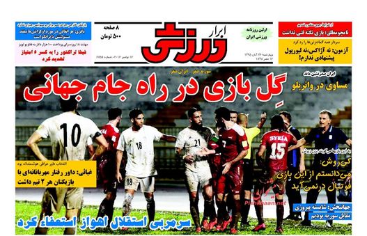 صفحه اول روزنامه های ورزشی چهارشنبه ۲۶ آبان