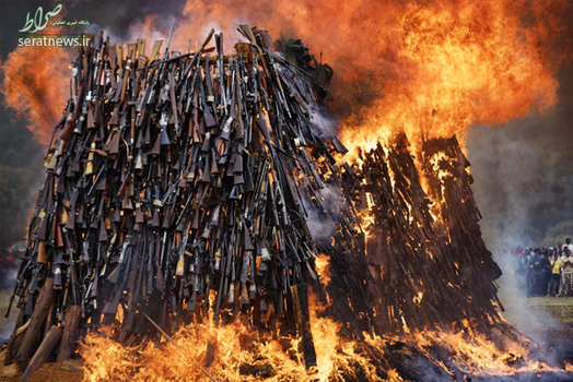 مقامات کشور کنیا در شهر نگونگ واقع در نزدیکی شهر نایروبی پایتخت کنیا 5250 سلاح غیرقانونی مصادره شده از مجرمان را که از یک دهه پیش تا کنون در انبارهای پلیس نگهداری می شد در مقابل دیدگان مردم منطقه آتش زدند. این اقدام به منظور متعهد بودن دولت کنیا به مقابله با مجرمان و شکارچیان غیرقانونی حیوانات صورت گرفته است.