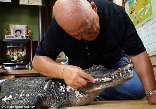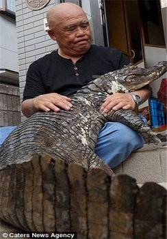 این مرد ژاپنی که نبوبیتمسو نام دارد، سالهاست با سوسماری که خریده رفیق است، به همراه آن پیادهروی میرود، خرید میکند، پارک میرود، حیوانش را در رختخواب میخواباند و حتی دندانهای آن را مسواک میکند.