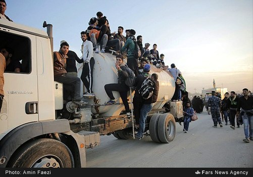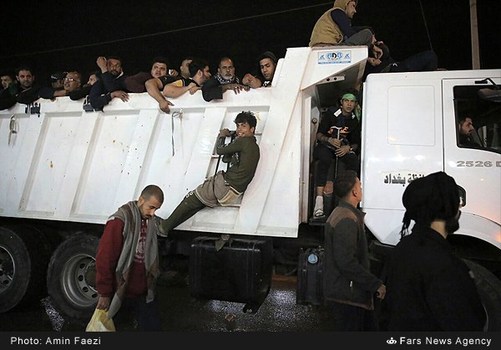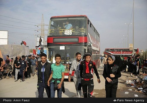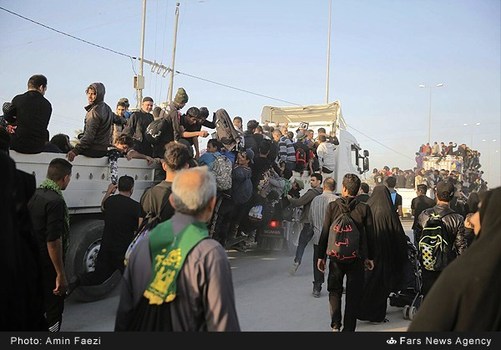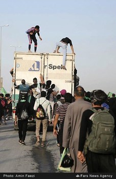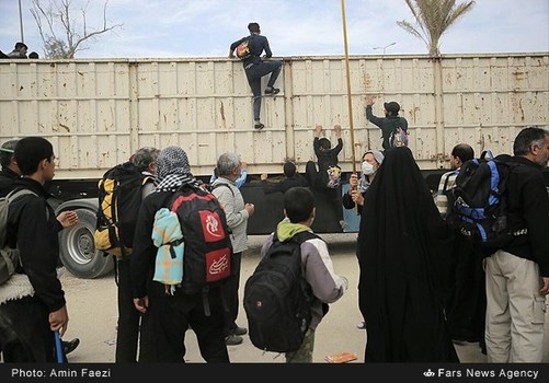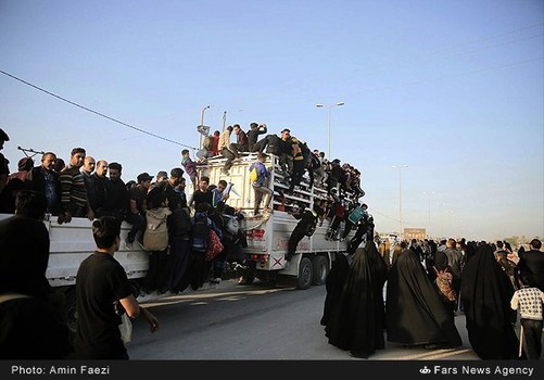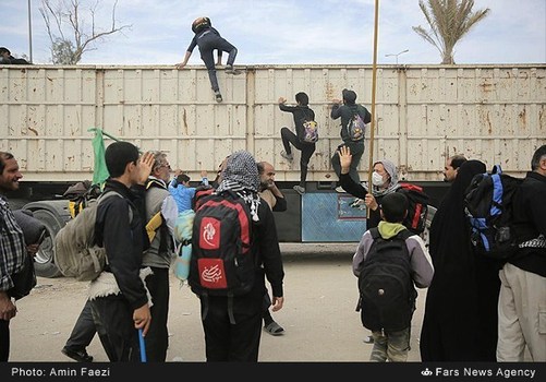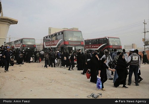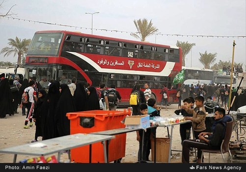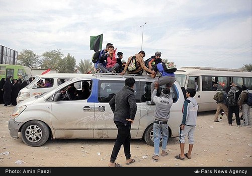 زائران اربعین حسینی برای خروج از کربلا به پایانه های مسافربری شهر مراجعه کرده تا خود را به نجف، مهران ،چذابه، شلمچه و ... برسانند.