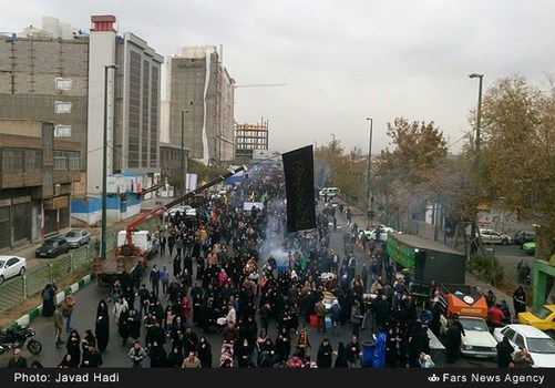 پیاده روی باشکوه جاماندگان اربعین حسینی صبح امروز یکشنبه 30 آبان مصادف با اربعین سالار و سرور شهیدان از میدان امام حسین تهران به سمت حرم حضرت عبدالعظیم حسنی(ع)‌ آغاز شد.