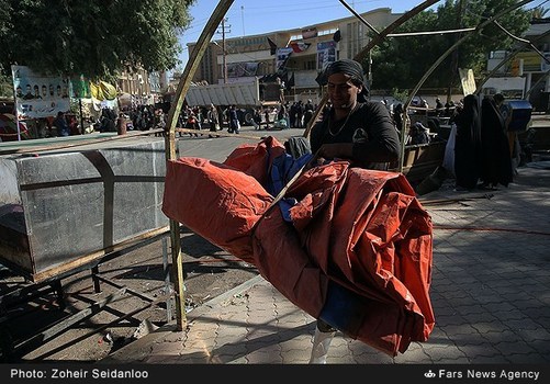 با اتمام مراسم پر شکوه اربعین حسینی، جمع آوری موکب ها در کربلای معلی آغاز شده است.