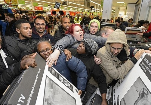 درگیری بعد از آن آغاز شد که مردم بر سر دستکاه DVD و سیستم بازی که تخفیف بیشتری داشت باهم گلاویز شدند.