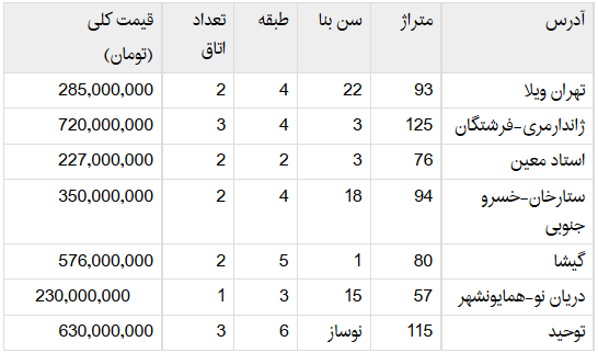 جدول/ قیمت آپارتمان در منطقه ۲ تهران