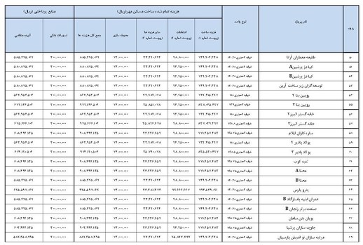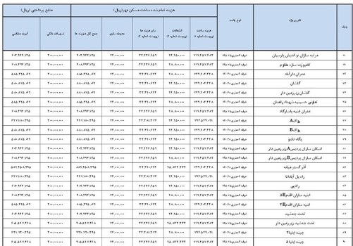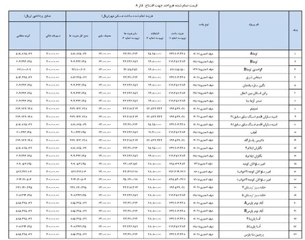 بدون احتساب تسهیلات بانکی و با در نظر گرفتن تیپ بلوکها و متراژ واحدها